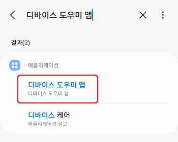 기기 설정 > '디바이스 도우미 앱' 검색('검색'을 통해서만 앱을 확인할 수 있어요.)