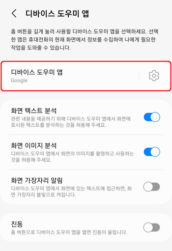 '디바이스 도우미 앱'이 Google로 설정되어 있는지 확인해 주세요.