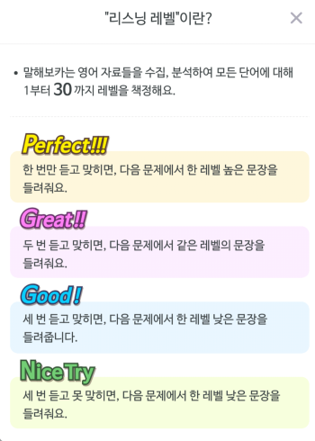 레벨을 고민할 필요가 없어요. 20개 문제를 풀면 말해보카의 인공지능이 내 수준에 딱 맞는 학습 콘텐츠를 제시해 줘요